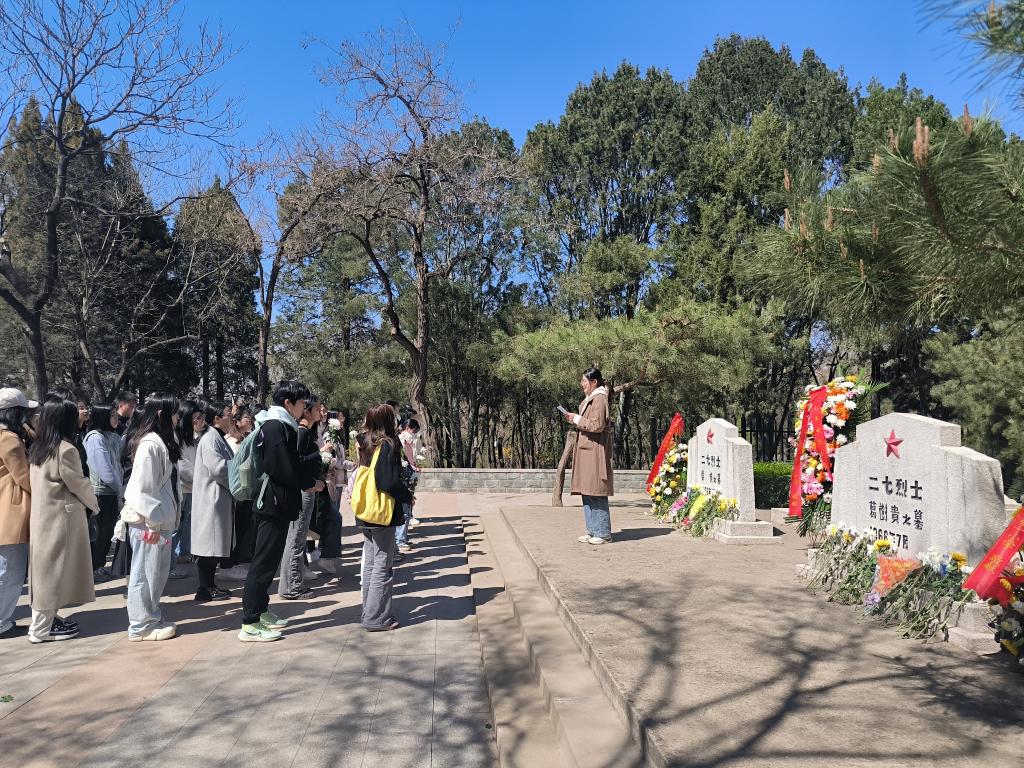 2023年3月30日上午,值清明节来临之际,Beat365中文官方网站党总支在本科生、研究生三个学生党支部开展“缅怀革命先烈,不忘初心使命”主题党日活动,组织学生党员、发展对象和积极分子近50人赴长辛店“二七”纪念馆参观学习,并在“二七”革命烈士陵园举行悼念活动,党总支组织员张春霞带队参加。