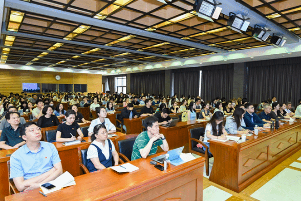 2025年7月1日中国共产党成立104周年之际,Beat365中文官方网站党总支组织师生党员在行政楼配楼二层报告厅参加Beat365中文官方网站2025年全校党员集中培训第一课,集体观看由中共中央党校(国家行政学院)党的建设教研部副主任祝灵君讲授的“学习贯彻习近平总书记关于加强党的作风建设的重要论述和中央八项规定精神”课程视频。