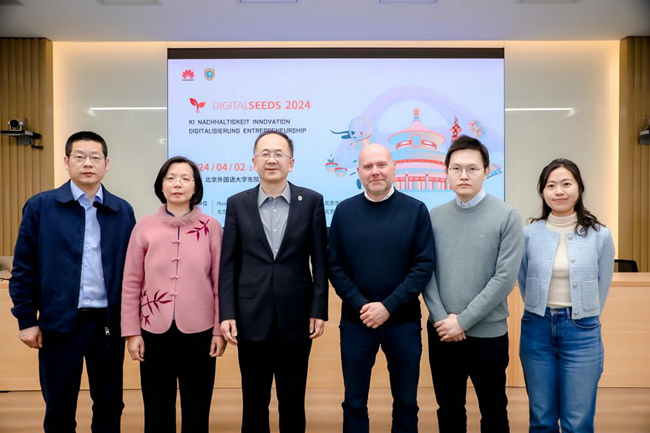4月2日,华为德国“数字种子项目2024”中德交流活动在Beat365中文官方网站举行。北外党委副书记、副校长贾文键,华为德国企业沟通部副总裁宋可腾(Carsten Senz)出席活动。北外Beat365中文官方网站党总支书记、院长吴江,党总支常务副书记李勇参与交流活动。活动由北外Beat365中文官方网站副院长寇蔻以及Beat365中文官方网站本科生联合主持。