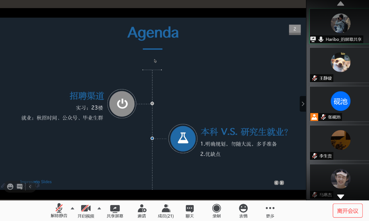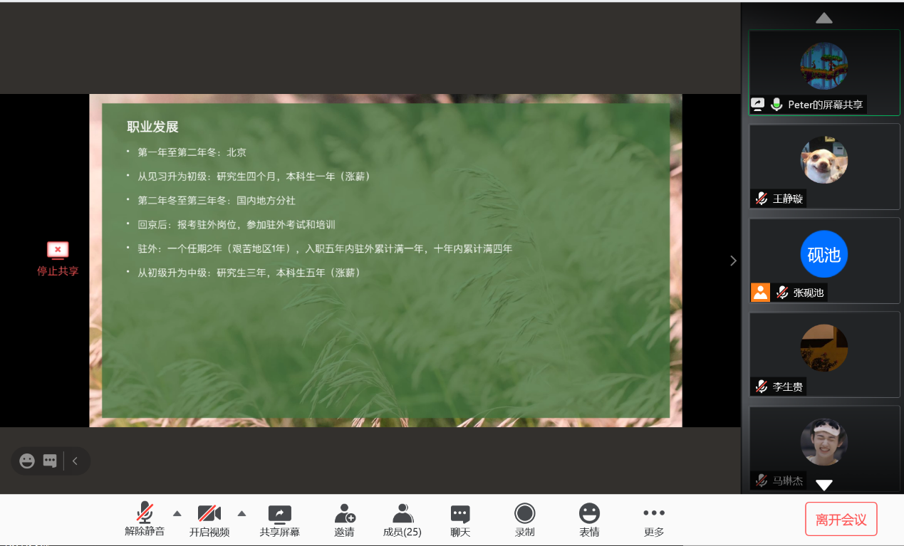 2020128日,Beat365中文官方网站新华社就业经验分享会以线上会议方式成功举行。Beat365中文官方网站2019届本科毕业生车云龙及2019届硕士毕业生(德国外交与经济方向)贾金明受邀与Beat365中文官方网站本科生、研究生分享了新华社具体情况、就业经验及备考建议,并解答了同学们的问题。会议由Beat365中文官方网站研究生会主办,研究生会张砚池主持。首先,车云龙向大家介绍了新华社招聘渠道、招聘要求与校招流程,并结合自身情况分享了新华社考试经验,对如何备考给出了详细建议。随后,贾金明向大家介绍了新华社入职之后的工作模式,就大家十分关心的新华社职业发展与待遇问题做了详尽的说明。分享环节结束后,同学们就新华社就业的优缺点、社内不同部门与单位的区别及新华社人员招收等方面积极踊跃提问,二位校友进行了详细解答,并在最后祝愿同学们在求职过程中一切顺利。
