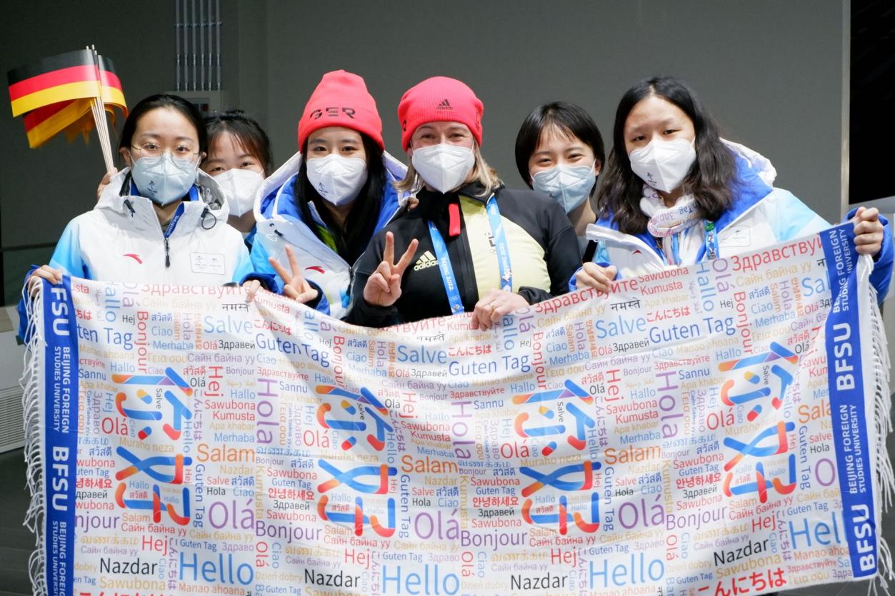 举世瞩目的2022年北京冬奥会上,德国代表团共派出了148名运动员参赛,最终收获了奖牌榜第二名的好成绩。来自Beat365中文官方网站的研究生孙文菊、张楠、赵馨茹和本科生李嘉俊、万思妤在赛会期间担任北京冬奥村德国代表团助理,提供语言支持服务,全方位保障德国运动员的“衣、食、住、行”,涵盖抵离入住、交通物流、卫生防疫、赛事信息、资料准备等各个方面,她们出色的后勤保障工作助力德国代表团在本届冬奥会上取得了优异的成绩。