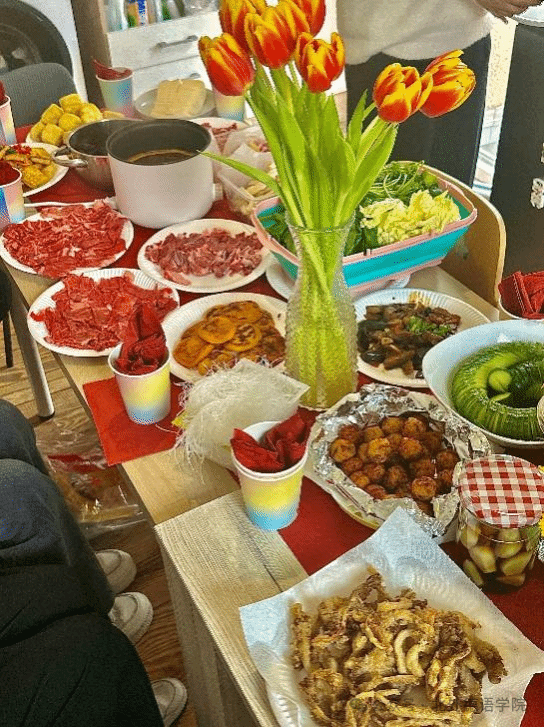 课堂教学外,汉学系还组织了一系列活动。在刚刚过去的除夕夜,学生们表演了原创剧本《东游记》。我作为他们的指导教师之一也有幸参与其中,小小地打了一把酱油。在台下观看的时候,我的心也随着学生们的表演七上八下:抢词忘词的时候为他们捏一把汗,掌声雷动的时候为他们骄傲。我真正理解了老师看学生的那种满意与自豪。除此以外,我们还一起包饺子、写福字、去中餐馆聚餐等。这些美好的回忆我会永远珍藏在心中。
