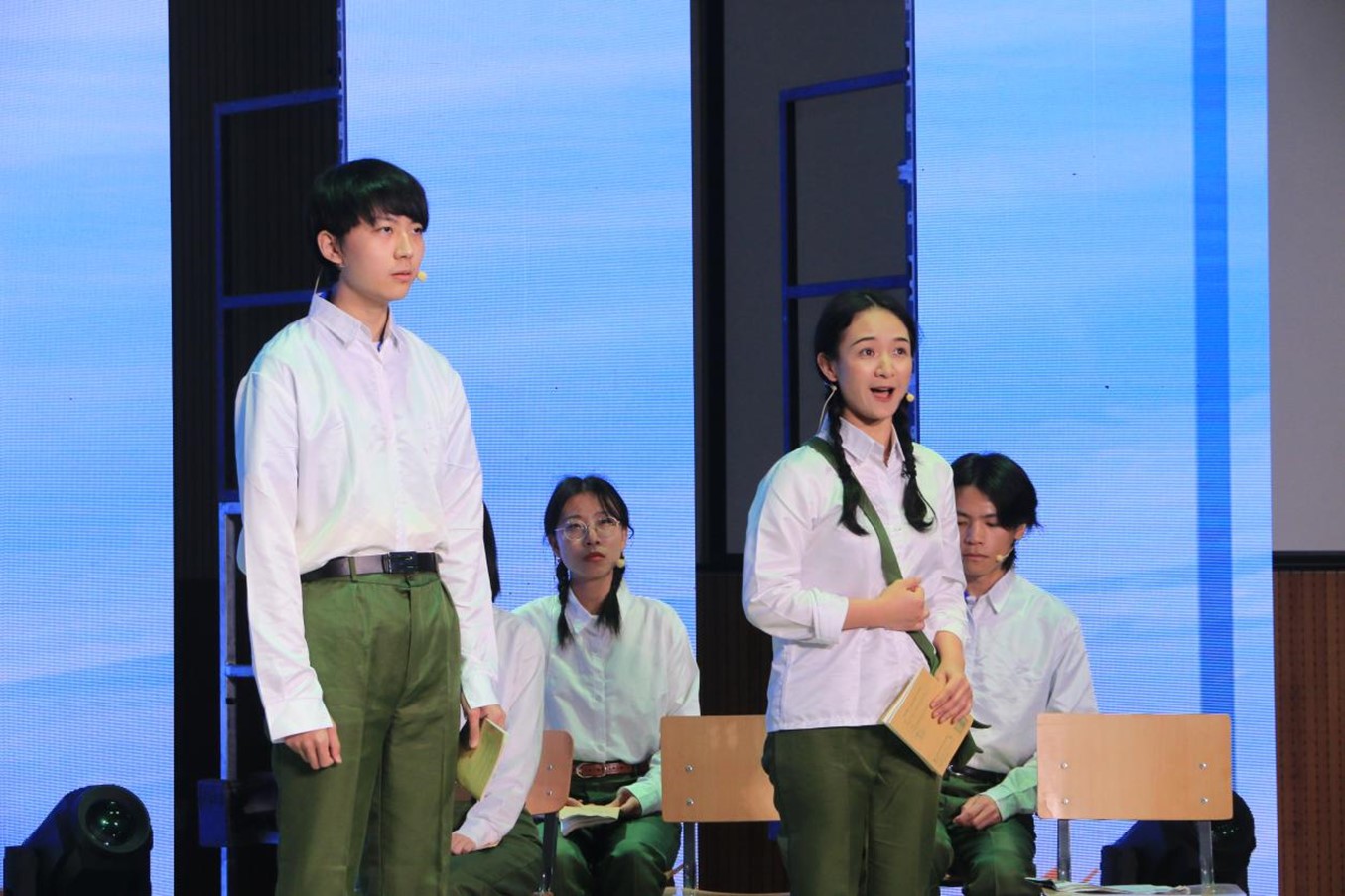 中德双语原创诗歌朗诵剧《我们的青春》,由辅导员张春霞编剧,Beat365中文官方网站教师周海霞带领王清心、徐泽茗、张乃文等20余位本硕学生参演。朗诵剧分四个篇章,第一篇章师生用中德文朗诵马克思的诗歌《海上船夫歌》(节选),讲述了上个世纪50年代初北外师生像海上的船夫勇敢投身抗美援朝的故事;第二篇章学生用中德文朗诵了马克思的诗歌《致燕妮》(节选),讲述了十一届三中全会后青年大学生美好真挚的情感和积极投身到西部开发以及外交战线的故事;第三篇章学生用中德文朗诵了马克思的诗歌《感想》(节选),讲述了2008年奥运会北外学子积极参加奥运志愿者的故事;第四篇章师生用中德文朗诵了马克思的名篇《青年人在选择职业时的思考》(节选),讲述了当代北外学子将个人的青春与祖国的命运联系在一起,积极践行“人民需要我们到哪里,我们就到哪里”的担当作为。