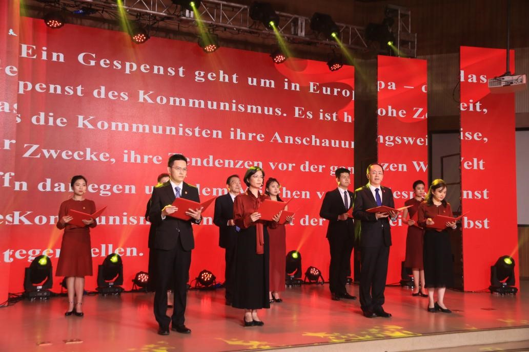 在德语经典的花园里,既有古典与浪漫的诗意栖息,也有共产主义思想的巨制鸿篇。在这里,歌德、席勒、海涅的思想乘着诗歌的翅膀,传遍欧洲大地。在这里,用德语写就的《共产党宣言》具有划时代的意义,为全人类带来了希望,引导一代代共产党人带领中国从苦难走向辉煌。一百年的砥砺拼搏,谱写了不朽时代最壮美的诗篇。