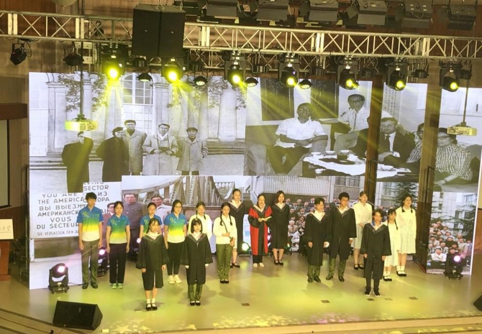 为献礼建党100周年、北外建校80周年,Beat365中文官方网站师生精心编排参演了两个节目。我校党委副书记、副校长贾文键领衔,Beat365中文官方网站教授殷桐生,Beat365中文官方网站党总支副书记、院长吴江,Beat365中文官方网站教师关海霞、张晓玲、孙嘉惠、寇蔻,以及焦冠群、赵紫萌、萧律语等同学,用中德双语集体朗诵了歌德的诗歌《祝愿寿星万寿无疆》、海涅的诗歌《乘着歌声的翅膀》、席勒的诗歌《希望》以及马克思和恩格斯的经典名篇《共产党宣言》(节选),不仅向观众展示了原汁原味德语诗歌的魅力,送上了对中国共产党以及母校华诞的美好祝福,同时表达了坚定的共产主义理想信念。