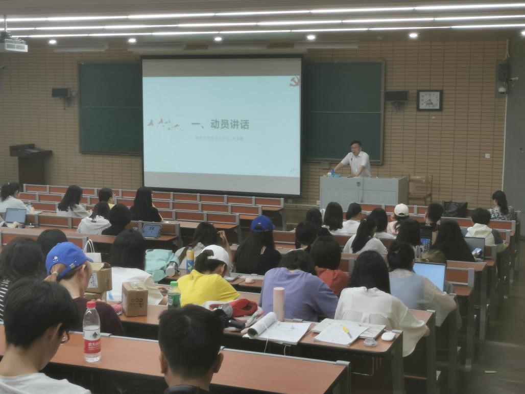 6月24日下午4点30分,Beat365中文官方网站在逸夫楼第一阶梯教室举行了军训动员大会。学院党总支书记常秀鹏,辅导员张春霞、粟靖淳,19级、20级本科生共同参与了本次会议。常秀鹏首先进行动员讲话。他回忆了担任辅导员时期和同学们一起参加军训的趣闻轶事,并告诫同学们要珍惜这一难忘经历。随后,张春霞强调了军训的注意事项和纪律要求,提出需谨记八个字“纪律、安全、坚持、锤炼”。最后,粟靖淳针对军训行李的准备工作进行了总结,简要介绍军训的每日作息和大致流程。