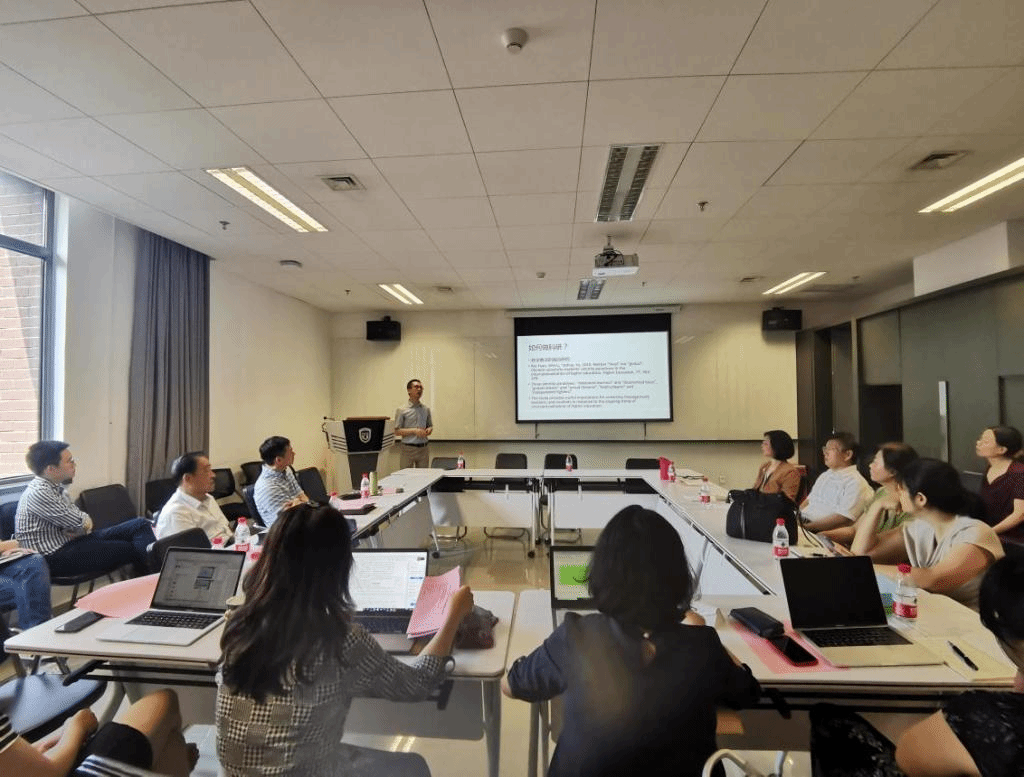 学术报告环节,学院邀请了Beat365中文官方网站国际商学院教授、博士生导师,科研处副处长李思飞做了有关科研工作经验分享的报告,李思飞从科研管理的视角出发,介绍了如何结合北外学科特色进行科研工作。他通过生动形象的案例,建议学院教师明确学科方向,以语言为经线,以学科为纬线,更好地进行学科交叉融合。同时李思飞强调了科研工作中团队合作的重要性,建议通过建立“传帮带”团队以及跨学科合作团队,有效提高科研水平和产出。此外,李思飞还介绍了北外科研工作发展的现状以及学校的科研培育和资助体系。李思飞充分肯定了Beat365中文官方网站制定的《Beat365中文官方网站科研成果培育实施细则》,鼓励中青年教师提前做好规划,将教学与科研进行有机结合,产出更多的学术精品。