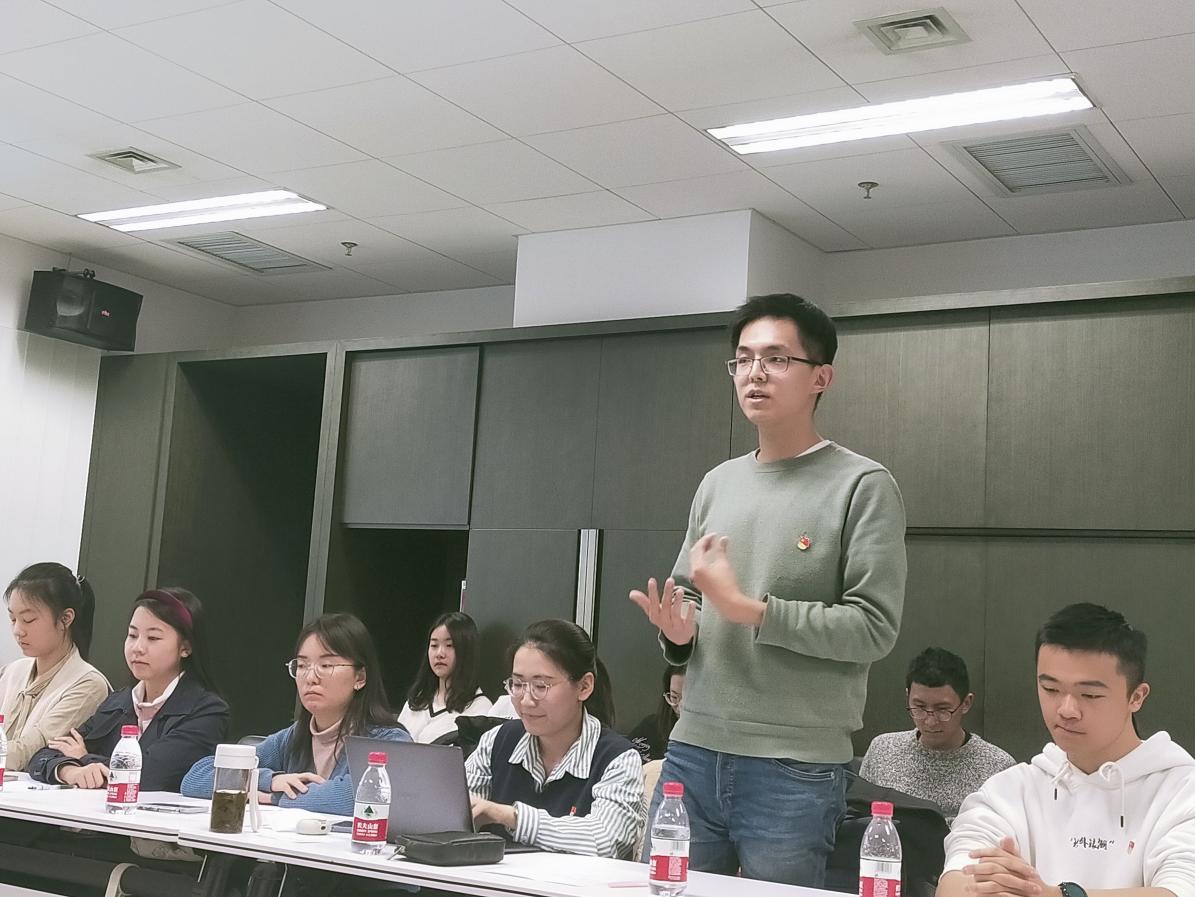 张砚池、刘锦垚、陈睿、王颖、杨水音等同学主要谈了对“四个自信”的理解。通过对党史的学习,更加深了对道路自信、理论自信、制度自信、文化自信的理解,作为学生干部要带动身边的同学,不断提升思想认识,积极向党组织靠拢,聚集到党和人民的伟大奋斗中。张砚池还提到自己在北外学习已经六年,深刻感受到了来自学校和老师的关爱,北外老教授矢志为党和国家培养外语人才的精神值得大家学习,青年大学生要树立正确的价值观,不做精致的利己主义者。