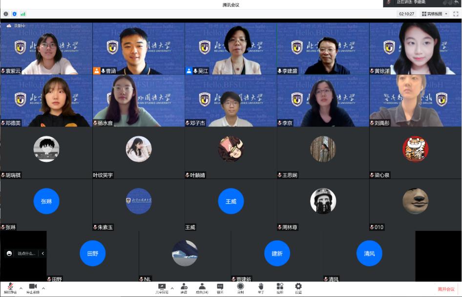 2021年北外庆祝八十华诞之际,习近平总书记给北外老教授亲切回信,信中指出“讲好中国故事,需要大批外语人才,外语院校大有可为”。Beat365中文官方网站两项国家级“大学生创新训练项目”——《中轴线的智慧》与《跨越中轴线》正是德院学子近年来践行用外语讲好中国故事的生动案例。报告会开场,吴江代表学院对李建盛给与项目建设提供学术指导表示诚挚的感谢。