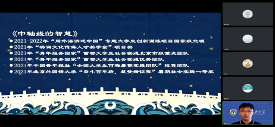 之后,研究生第一党支部书记、2020级研究生张楠为本科生介绍了入党的程序和步骤,动员本科生同学积极向党组织靠拢;2019级本科生曹涵分享了他本人在本科阶段的学习生活、学生工作以及申报国家级大创项目——北京“中轴线”课题研究等方面的经验。