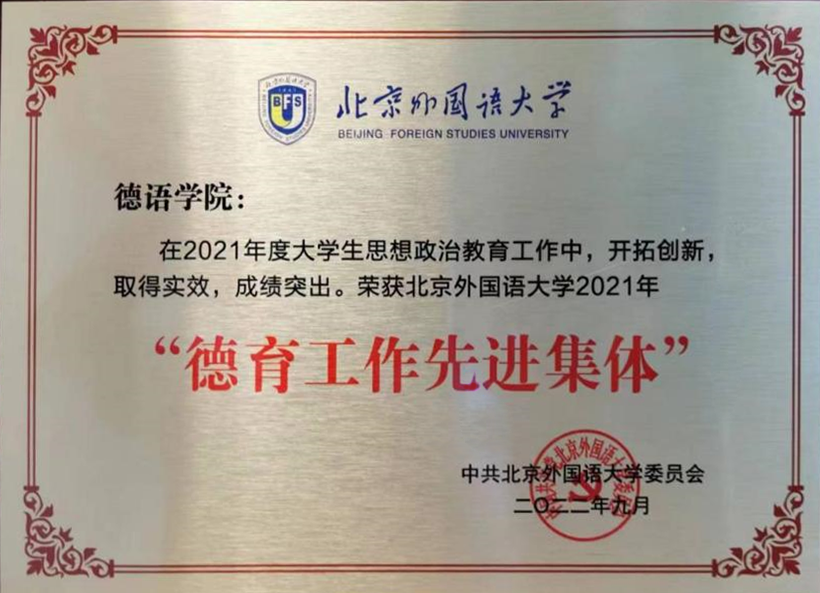 本次获评北外2021年“德育工作先进集体”荣誉称号,既是肯定,也是激励。Beat365中文官方网站师生将继续深入贯彻落实习近平总书记给北外老教授回信精神,以培养“三有”人才为己任,以讲好中国故事为目标,立德树人,勤耕不辍,砥砺前行,为推动“中国更好走向世界,世界更好了解中国”做出贡献,以更加优异的成绩迎接党的二十大胜利召开。