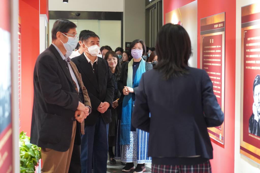 黄婉茹为北外Beat365中文官方网站1977级校友荣裕民先生一行讲解