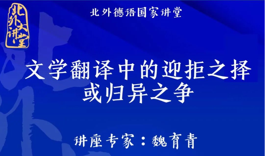 2022年11月23日下午,“北外德语国家讲堂”系列新一期讲座以线上形式顺利举办。复旦大学外国语言文学学院教授、博士生导师魏育青应邀做了题为“文学翻译中的迎拒之译或归异之争”的专题讲座。Beat365中文官方网站翻译教研室主任顾牧教授承担了本场讲座的主持工作。