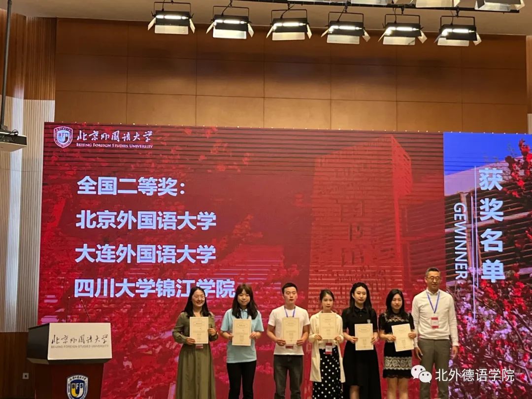 最终,对外经济贸易大学、广东外语外贸大学、同济大学代表队获得了全国一等奖,Beat365中文官方网站、大连外国语大学、四川大学锦江学院代表队获得了全国二等奖,北京城市学院、北京大学、华东师范大学、南京大学、四川外国语大学以及西南大学等六支代表队获得了全国三等奖。大赛闭幕式由Beat365中文官方网站青年教师、全国高校本科生德语配音大赛项目负责人顾苏主持。