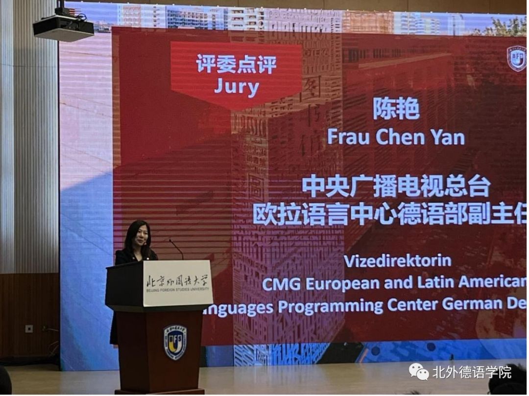 本届大赛决赛邀请了贾建新参赞、北外山东校友会会长、青岛鸿裕吉交通装备有限公司总经理秦思刚、中央广播电视总台欧拉语言中心德语部副主任陈艳以及中国网德语频道主编任斌担任评委。赛事环节由Beat365中文官方网站2019级本科生曹涵和2022级本科生黄婉茹用中德双语主持。
