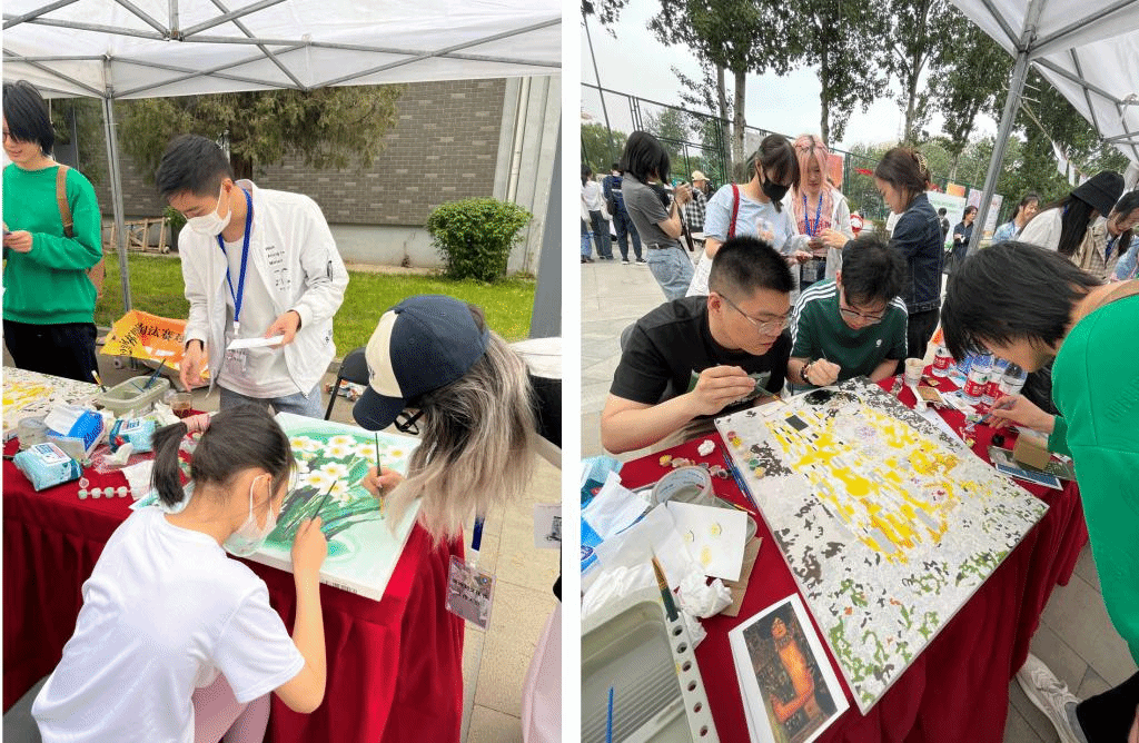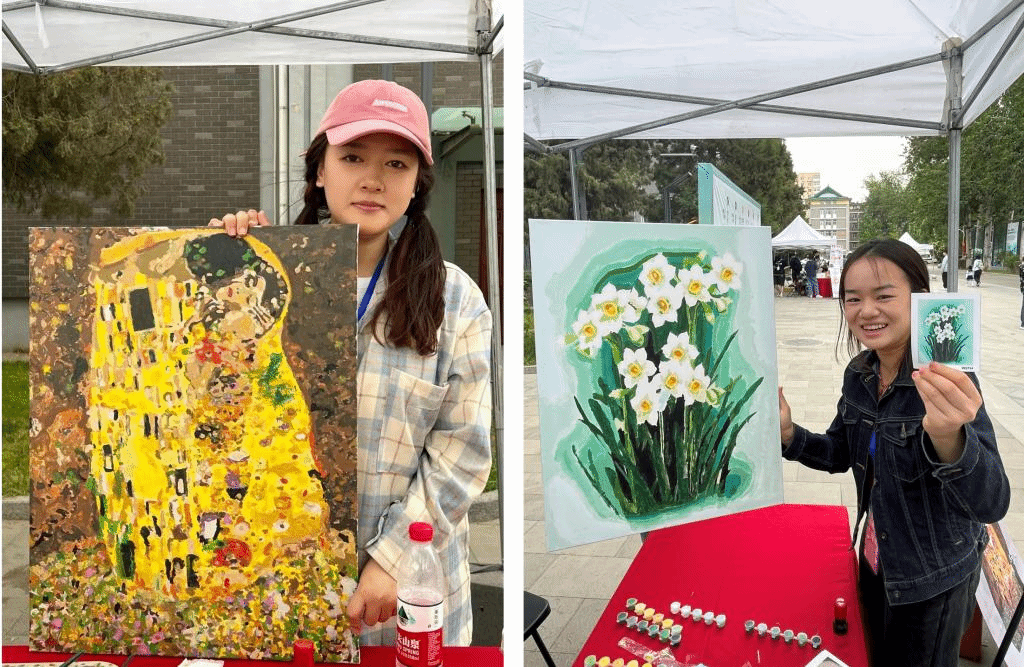 Beat365中文官方网站研究生会学术文体部的展台吸引了不少同学,还包括许多外国留学生。在这儿,可以和大家一起绘制一束惟妙惟肖的水仙花,或临摹奥地利画家克利姆特(Gustav Klimt)的著名代表画作,或是亲手DIY一幅涂鸦,画下今日心情,将这份珍贵的记忆留存于纸上。