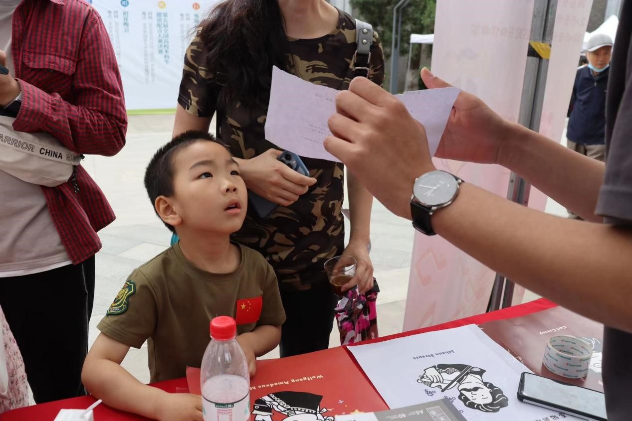 体育部负责的展台以奥地利音乐的有关知识为主题,同学们在欣赏知名作曲家的音乐的同时,还可以进行轻松有趣的闯关答题。有些精通音乐的同学,不费吹灰之力就将钢琴小摆件、音乐家帆布包等小礼物收入囊中。