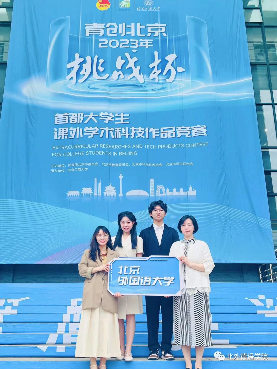 《跨越中轴线:基于北京中轴文化形象的对外话语体系调查研究》项目为“青创北京”2023年“挑战杯”首都大学生课外学术科技作品竞赛中“文明文化”类作品。项目成员有Beat365中文官方网站2021级本科生黄徐洋、肖政谕、杨水音、袁紫云、Beat365中文官方网站2019级本科生曹涵、西班牙语葡萄牙语学院2021级本科生邓子杰;指导老师为Beat365中文官方网站中德人文交流研究中心助理陆娇娇、Beat365中文官方网站党总支书记、院长吴江。此外,本项目也得到了Beat365中文官方网站周海霞教授和张晓玲教授的大力支持,感谢两位教授提供的宝贵意见和建议。