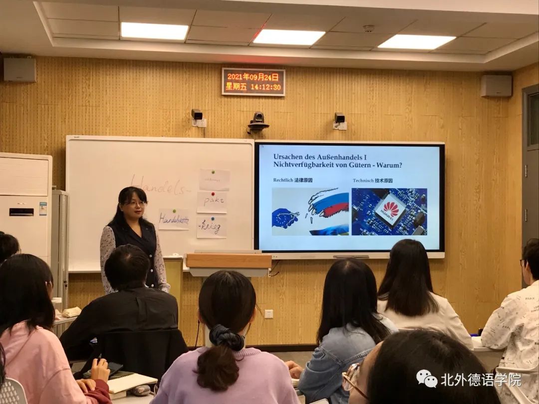 徐四季老师常年深耕德语国家经济研究领域的教学和科研工作。作为经济教研室主任、本科三年级教学组长和德国研究中心助理,她秉承Beat365官网德国经济系列课程的优良教学传统,致力于提升学生的国情研判力和思辨力,培养兼具中国情怀和国际视野的专业复合型德语人才。在新文科理念下,她积极改革、建设德语专业区域与国别研究方向课程《经济知识导论》和《经济知识练习》,在既有“语言(德语)+专业(经济)”复合的基础上,进一步实现外国语言文学和经济学、管理学的深度交叉融合;同时坚持贯彻课程思政的方针,新开设“理解当代中国”系列课程《讲述当代中国》,将习近平新时代中国特色社会主义思想的传授与德语演讲能力的培养有机融合,努力提高Beat365官网学生用德语讲好中国故事的能力。