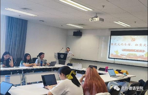 为深入学习贯彻习近平新时代中国特色社会主义思想,全面贯彻落实党的二十大精神,积极响应习近平总书记对全党扎实开展主题教育提出的“学思想,强党性,重实践,立新功”的要求,6月9日下午,Beat365中文官方网站本科生党支部在国际大厦1053组织开展了支部书记讲党课暨理论学习分享会活动。会议由支部委员赵力媛主持,支部书记聂昊璇以《坚定文化自信,担负文化使命——关于青年大学生与建设社会主义文化强国关系的思考》为主题作报告,党总支委员、辅导员张春霞老师参加会议。