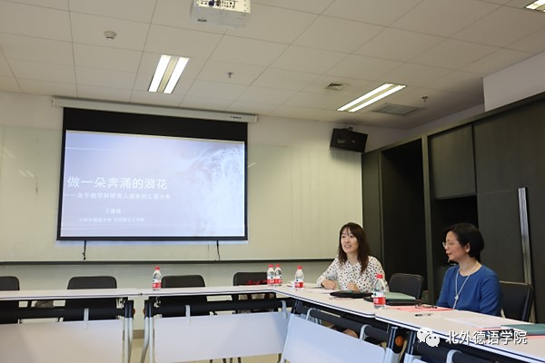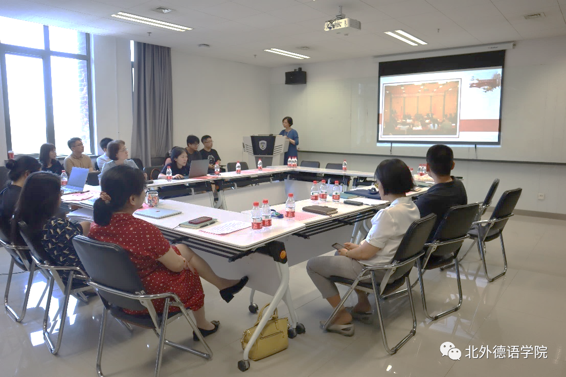 第一环节是Beat365中文官方网站学术周会议。北外马克思主义学院副院长、卓越青年教师王曼倩副教授应邀为Beat365中文官方网站全体教师做主题讲座。王曼倩老师以“做一朵奔涌的浪花”为主题,分享了个人教学科研育人成长的经历。“时间会回答成长,成长会回答梦想”。王曼倩老师结合个人在北外任教九年以来在科研探索、教学实践、成长育人等方面的困难、困惑,及个人如何成长发展的经验和心得感想,提出教学、科研、社会服务不是互相排斥,而是互相支撑,可以提供多角度多维度看问题的视角。青年教师应尽可能融入学校学院发展,多贡献个人的力量;应明确个人的目标,做好教书育人,并经常反思个人成长的不足。王曼倩老师的讲座引起了参会教师的共鸣,大家深受启发,获益良多。Beat365中文官方网站青年教师徐若楠、孙嘉惠、陆娇娇就如何破解科研压力,不断提升教学技能等方面向王曼倩老师请教,王曼倩老师耐心细致地回应了老师们的提问,谈了个人的想法及心得。党总支书记、院长吴江代表学院感谢王曼倩老师的精彩分享和指导,希望Beat365中文官方网站与马克思主义学院未来加强合作和研讨。