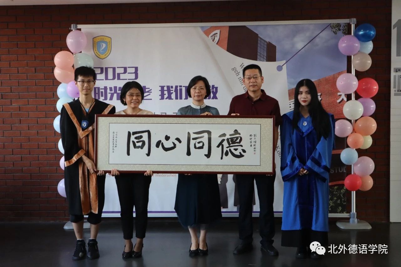 最后党总支书记、院长吴江做春季学期工作的总结汇报。对照学期初工作重点汇报了Beat365中文官方网站本学期在学习贯彻二十大精神、师德师风建设、课程思政、本科教学、教材编写、科研、招生、就业等方面的工作进展,同时汇报了以“洛克与中国”主题展、奥地利文化巡礼、第五届全国高校本科生德语配音大赛、“音乐之声”初夏晚会以及北外德语国家讲堂系列学术报告等为主体活动的Beat365中文官方网站“春之声”文化节——“邂逅奥地利”的举办情况,对积极参与和筹办各项活动的师生表示诚挚的谢意。临近期末,师生团结一心,成功接待德国社民党联合主席克林贝尔一行,为中德人文交流尽了绵薄之力。总结会的最后,吴江代表学院感谢校友给与学院各项工作的鼎力支持,对本学期在教学、科研、管理各领域获得奖励的师生表示由衷的祝贺,并给各位老师展示了2023届毕业生向学院赠送的“同心同德”的书法作品,希望师生“同心同德”,守正创新,踔厉奋发,共同推动学院各项工作高质量发展。