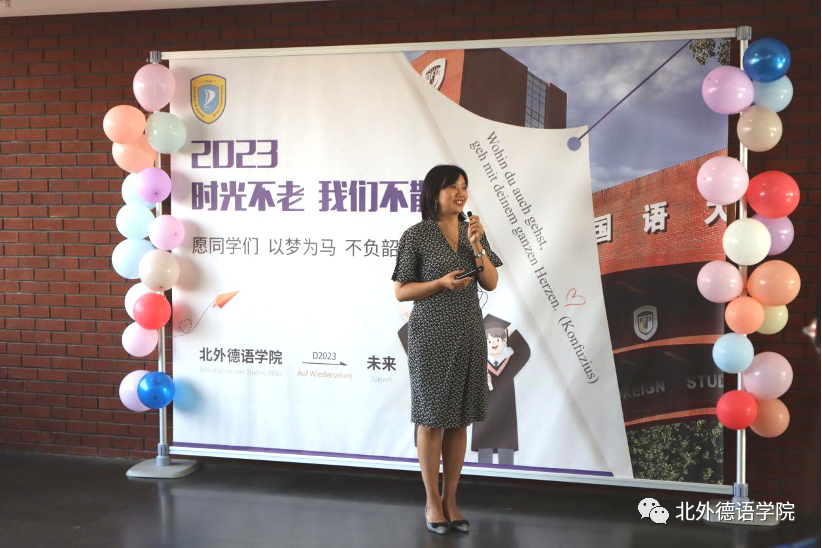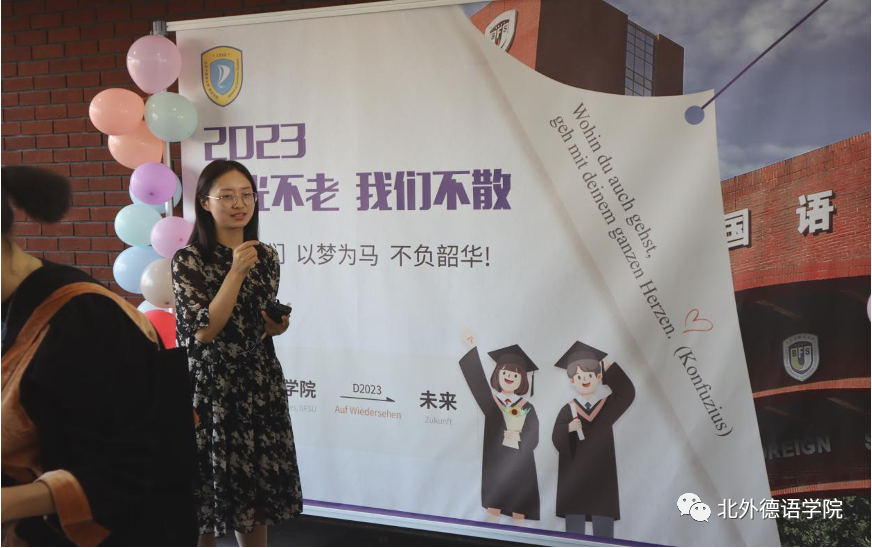Beat365中文官方网站党总支书记、院长吴江寄语2023届毕业生:在社会大课堂的历练中养成豁达开朗的胸襟,做到“心有山海”;面对困难和挫折时勇敢坚毅,不忘初心,坚持“心有所向”;牢记北外德语人“十四人一条心”的团结精神,永远“心有大德”。