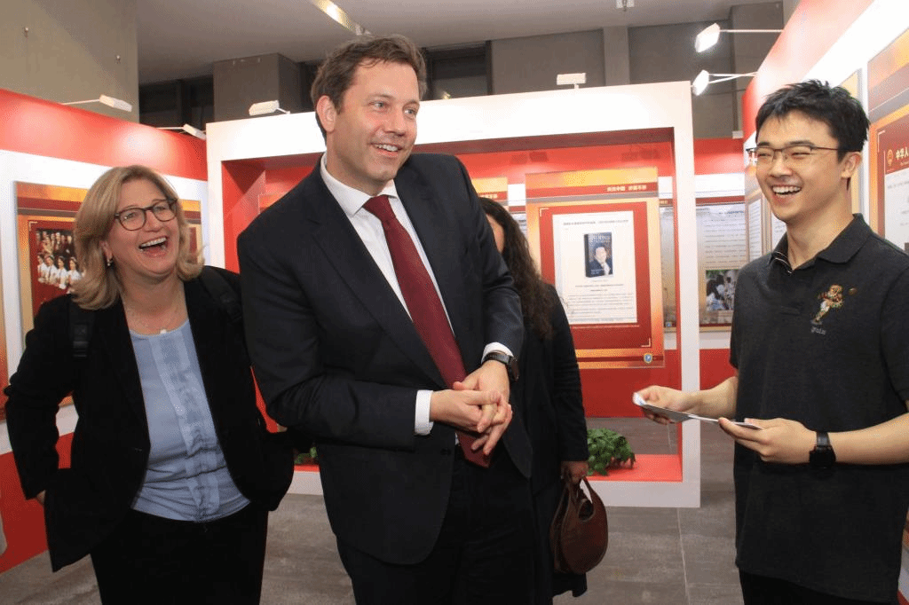 观展过程中,克林贝尔与学生们积极互动,针对展板内容不时抛出风趣幽默的问题,学生志愿讲解员机智巧妙的回答引得大家开怀大笑,观展全程洋溢着轻松愉快的氛围。
