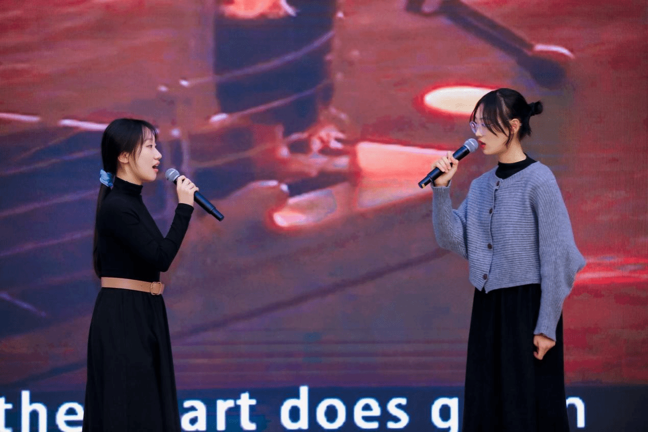接下来是一场和谐动听的合唱节目。来自24级刘至夏、武子涵、刘兆彤同学的选曲十分经典——《My heart will go on》。他们用音符编织出了永恒的承诺与无尽的深情,让我们在音乐中感受到无惧沧海桑田爱的力量。