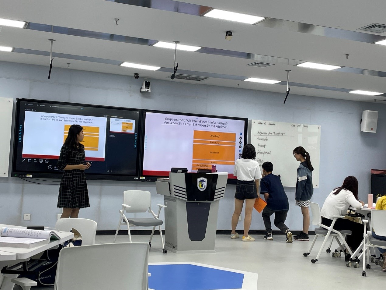 顾苏老师的公开课为语音阶段的VorkursVL3),是德语入门课程,也是关键的语音学习阶段。课上讲授新的发音规则、让学生模仿和练习、教师与学生互动纠音,以趣味性方式,激发德语初学者对德语学习的兴趣。顾苏老师试图探索一种更为平等的师生互动模式,让学生在轻松宽容的环境中开始语言学习的阶段,帮助学生树立学习德语的信心。