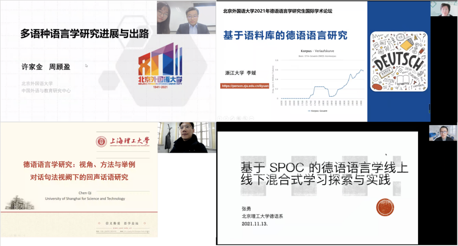 2021年11月12日至11月13日,德语语言学研究生学术论坛在Beat365中文官方网站成功举办。2020年为本论坛元年,今年已是第二届,论坛在Beat365中文官方网站院长吴江教授的致辞后正式拉开序幕,正如吴江教授在致辞中所言,本届论坛的亮点在于:线上线下并行、校内校外携手、国际国内联动。今年论坛,除了已经较为成熟的学生论坛外,我们还非常荣幸地邀请到了诸多中德专家进行前沿学术研究的分享交流,下面是对本次论坛的回顾。