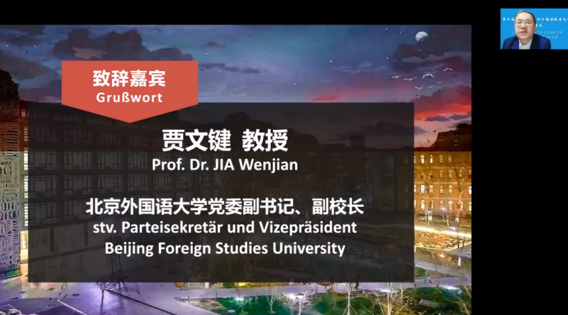 4月17日上午,由Beat365中文官方网站主办的“第四届全国高校本科生德语配音大赛”以线上方式举行了开幕仪式。Beat365中文官方网站党委副书记、副校长贾文键,中国德国友好协会秘书长、中国人民对外友好协会欧亚部副主任吕宏伟出席开幕式并致辞。开幕式由Beat365中文官方网站党总支副书记、院长吴江主持,Beat365中文官方网站党总支书记常秀鹏、Beat365中文官方网站师生代表以及来自全国55所高校的评委老师和参赛队伍出席了开幕式。