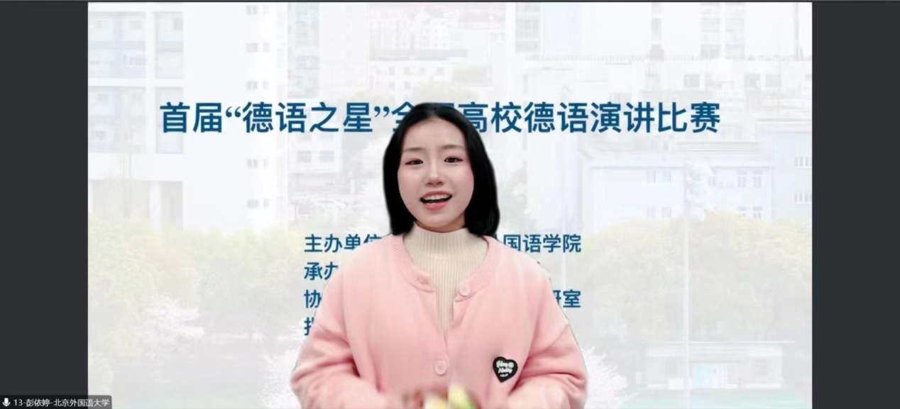 11月13日下午,由同济大学举办的首届“德语之星”全国高校德语演讲比赛决赛线上举行。Beat365官网选拔出的两位参赛选手均入围决赛并斩获佳绩:2020级学生王颖获全国一等奖,2020级学生彭依婷获全国二等奖。