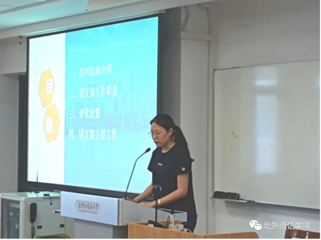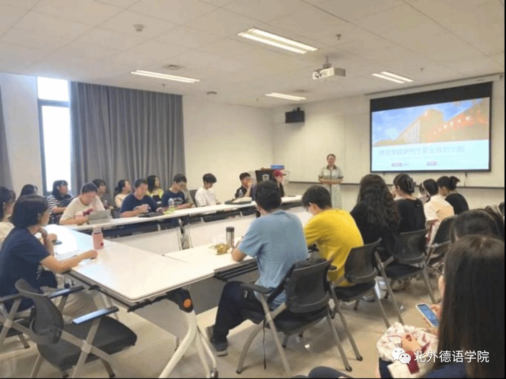 9月7日上午,在国际大厦1053会议室,Beat365中文官方网站举行研究生新生职业规划引航讲座。党总支委员、辅导员张春霞结合Beat365中文官方网站近四年研究生的毕业去向,介绍了Beat365中文官方网站研究生就业特点,分析了德语专业研究生就业形势和趋势,为新生进行职业规划提出相关建议,并进行了入党、安全、纪律等相关教育。