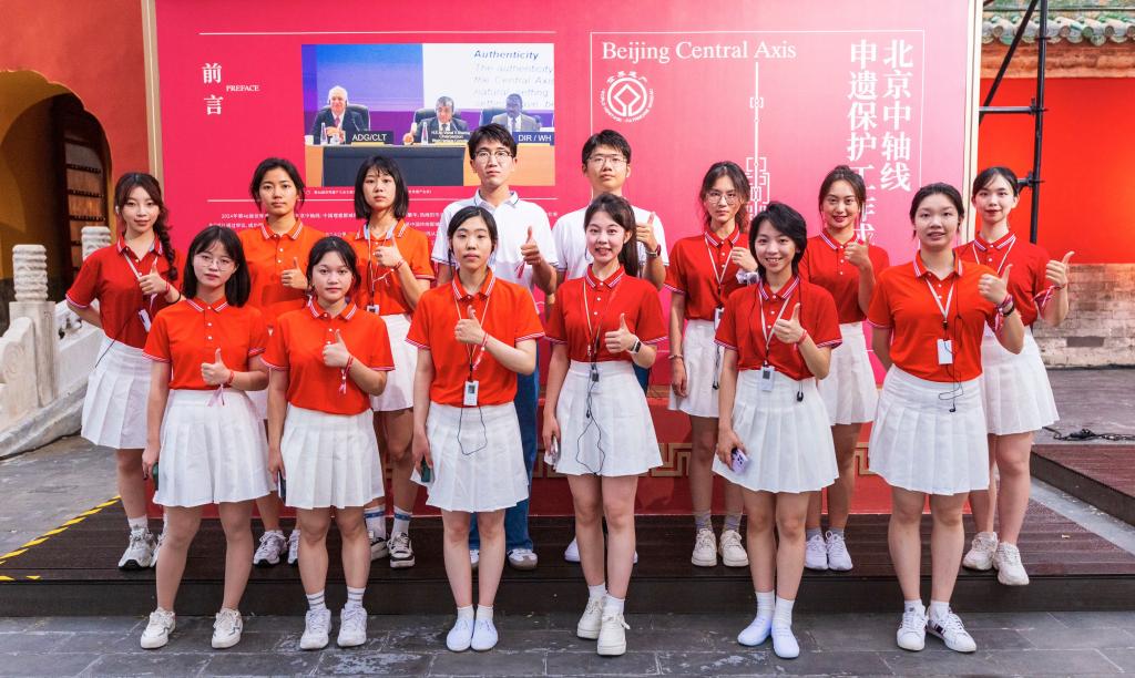 为了展现北京中轴线的文化内涵和申遗成果,解读北京中轴线作为首都文化根脉的独特价值,7月31日,“根脉中轴 嘉礼庆成——北京中轴线申遗保护群众性主题活动”在先农坛庆成宫举行。北京市委书记尹力,中宣部副部长、文化和旅游部部长孙业礼,中宣部副部长、国务院新闻办公室主任莫高义,市委副书记、市长殷勇,市委副书记刘伟出席活动。Beat365中文官方网站“话中轴·语世界”团队核心成员、来自Beat365中文官方网站、西班牙语葡萄牙语学院以及国际商学院共计14名学生受邀全程参与了主题活动。活动由北京广播电视台承制并于8月1日19:30在北京卫视播出。
