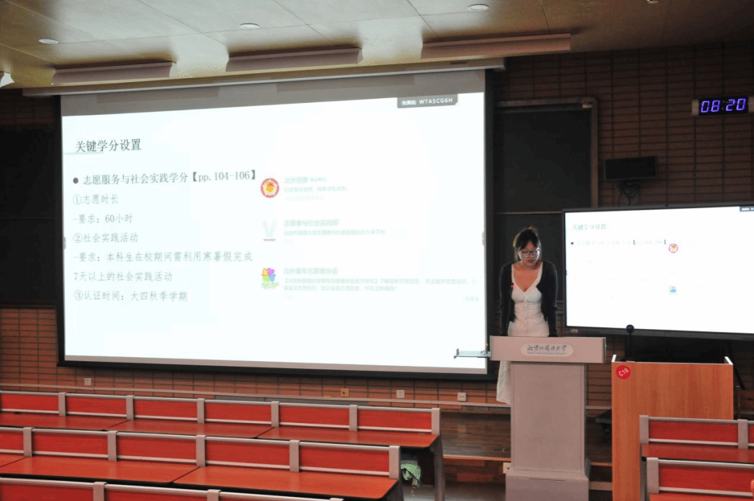 党总支组织员、辅导员张春霞,作了主题为“大学规划引航”的报告,介绍了Beat365中文官方网站近五年的本科生就业情况,分析了本科生就业趋势、就业特点,介绍了Beat365中文官方网站近年来本科生学业职业促进工作和取得的成绩,希望本科新生要及早开始职业探索。