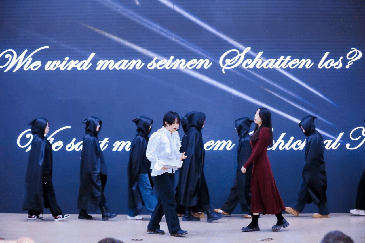 潘佳颖、雷婉珞等一众同学为我们带来了一场关乎个人命运和哲理的庞大剧目。她们表演了音乐剧《莫扎特》中的选段《Wie wird man seinen Schatten los?》。他们的杰出表演带我们走进了莫扎特的内心世界,一起感受到了那份关于个人自由与自我解放的渴望与探索。