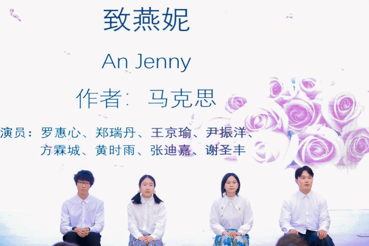 张迪嘉、侯景宜、方霖城、夏昀菎以及作为钢琴伴奏的张淡然为我们带来了一场文学视听盛宴。他们朗诵了著名德国诗人海涅的诗作,海涅温柔隽永的文字和他们温和的嗓音让大家展开了想象的翅膀,跟随海涅的脚步走进绮丽恬静的夜色中。