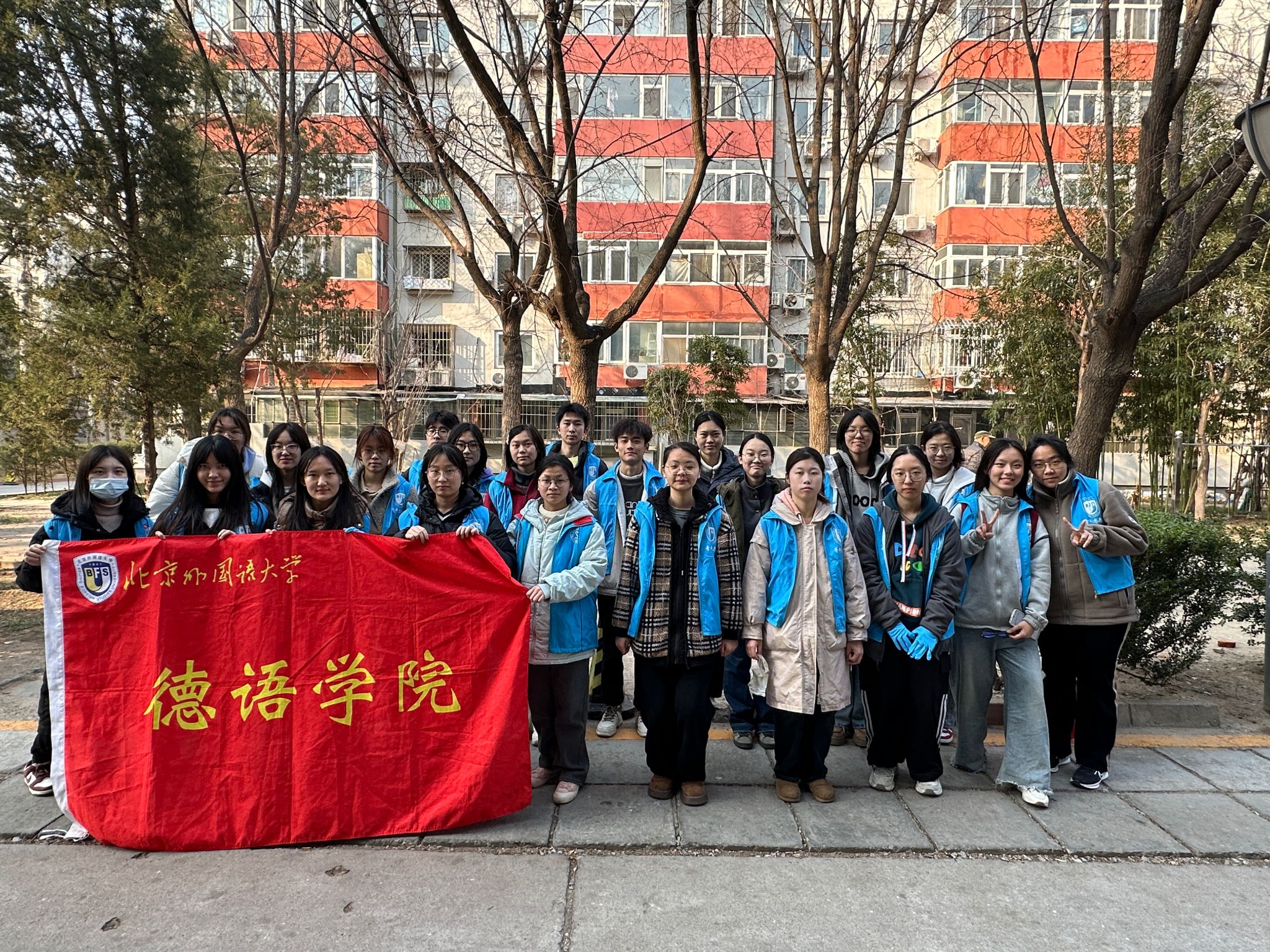 下午三时,北外Beat365中文官方网站学生志愿者社团“道德银行”组织了20余名青年学子,在北外西校区19号楼前集结完毕。大家身着蓝色志愿马甲,年轻的面庞上写满了期待。他们戴上劳动手套,手持扫帚、抹布、垃圾捡拾器等工具,在社区老师的指导下分成环境整治和卫生清扫两个小组。