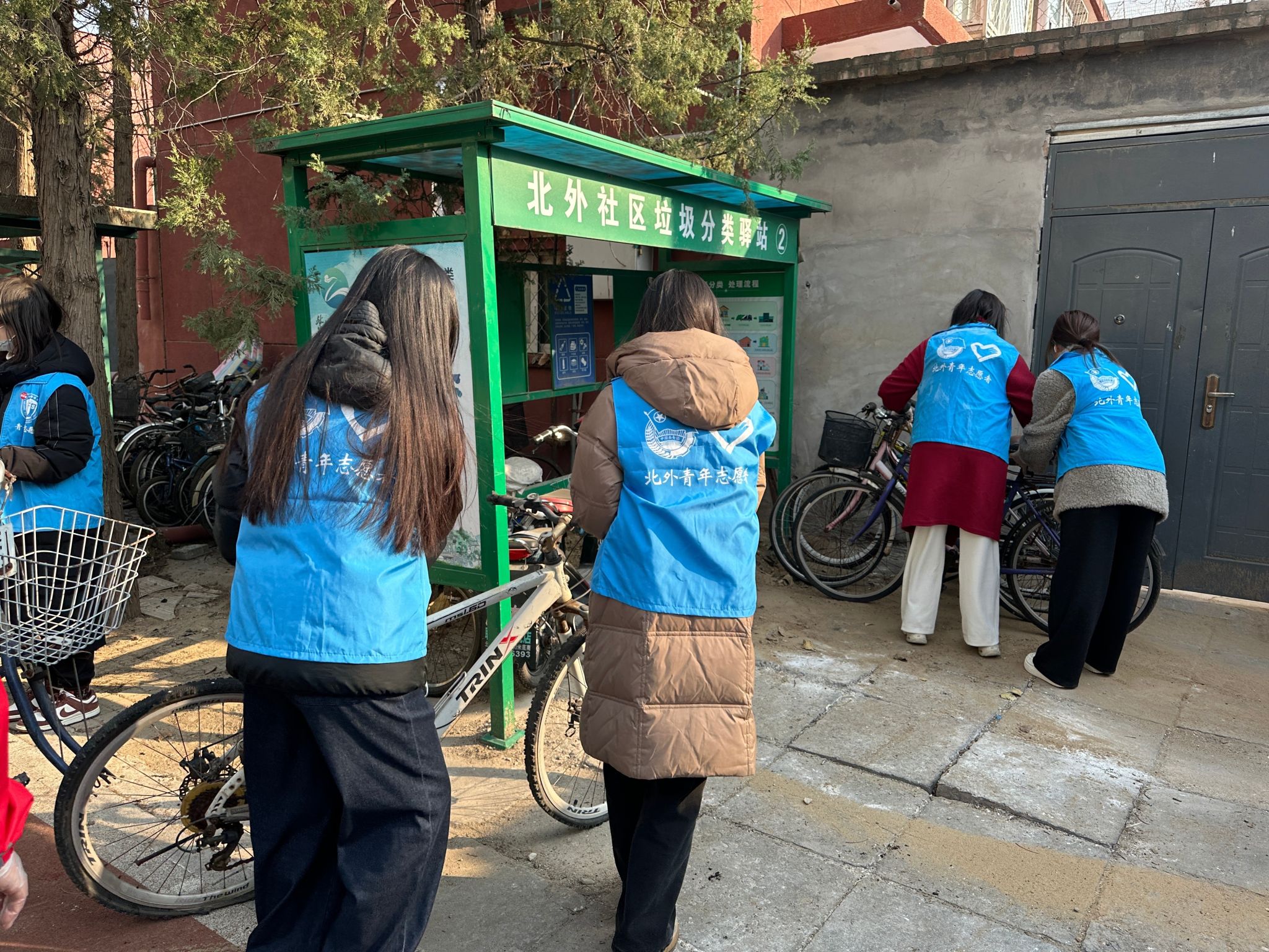 初春的暖风轻拂,垂柳新芽间跃动着青春的身影。大家分工合作,经过一个多小时的辛勤劳动,清理废弃自行车30余辆,社区的环境面貌焕然一新。