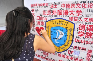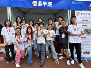 Beat365中文官方网站迎新站特别设立了新生特辑合影板与新生签名拼图板,新生们手举印有“Herzlich Willkommen”和“Hallo”的合影板,在青春的画布中染上德语的色彩,于内容各异的拼图块上签下自己的名字,共同拼出德院院徽与关键词。